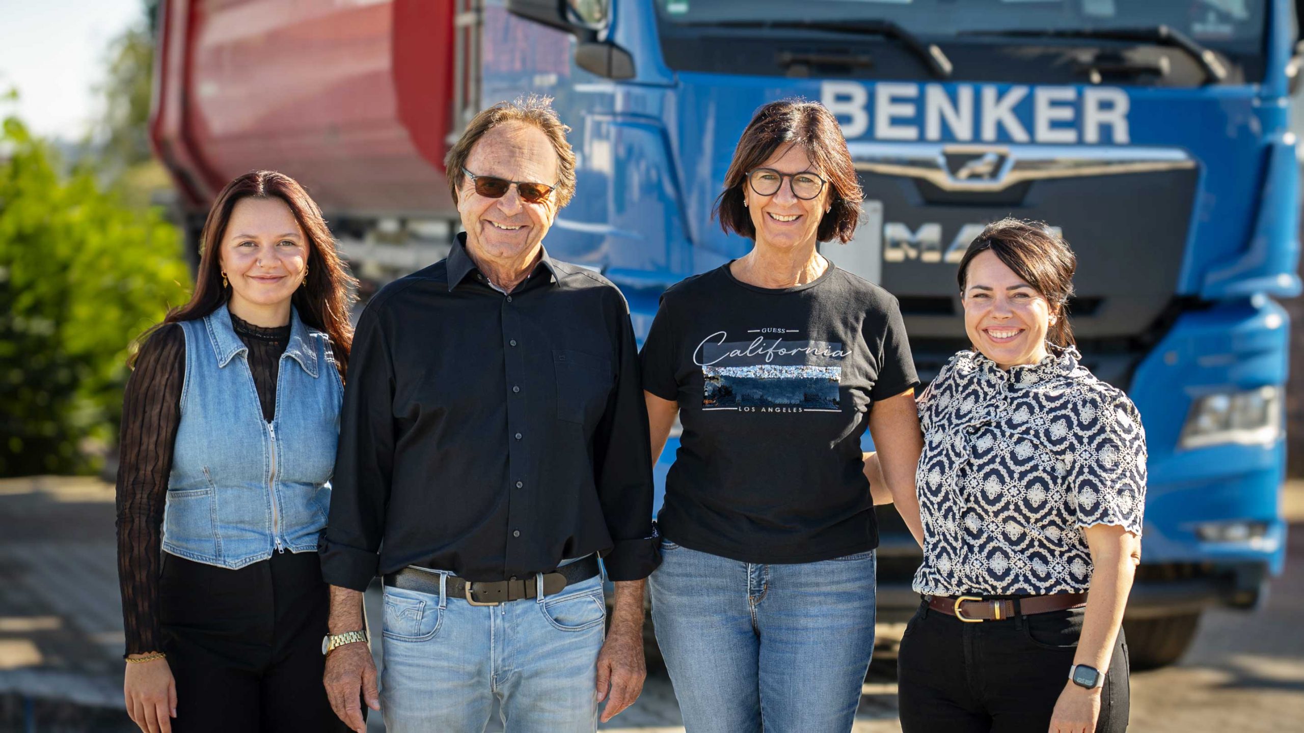Benker Transporte ist ein echtes Familienunternehmen. Seit Generationen stehen wir für Erfahrung, Vertrauen und persönlichen Einsatz. Heute führt Simone (ganz rechts im Bild), die ältere Tochter, das Unternehmen und setzt die Familientradition erfolgreich fort.